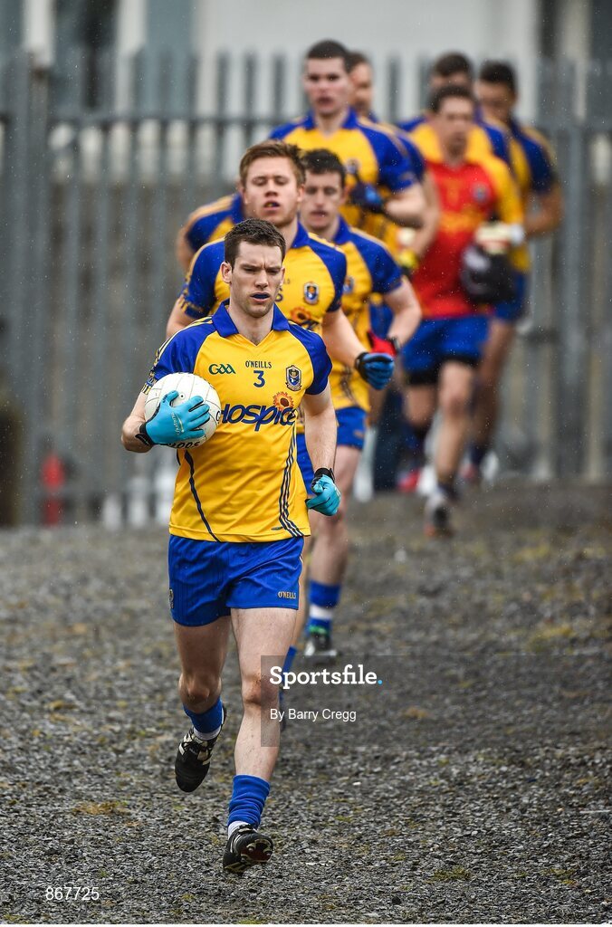 18 May 2014; Roscommon captain Niall Carty leads out his team to the pitch ahead of the game. Connacht GAA Football Senior Championship Quarter-Final, Roscommon v Leitrim, Dr. Hyde Park, Roscommon. Picture credit: Barry Cregg / SPORTSFILE