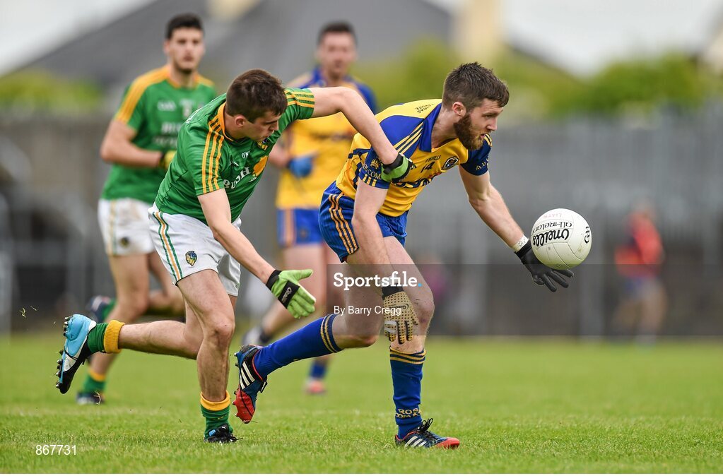 18 May 2014; Cathal Cregg, Roscommon, in action against Paddy Maguire, Leitrim. Connacht GAA Football Senior Championship Quarter-Final, Roscommon v Leitrim, Dr. Hyde Park, Roscommon. Picture credit: Barry Cregg / SPORTSFILE