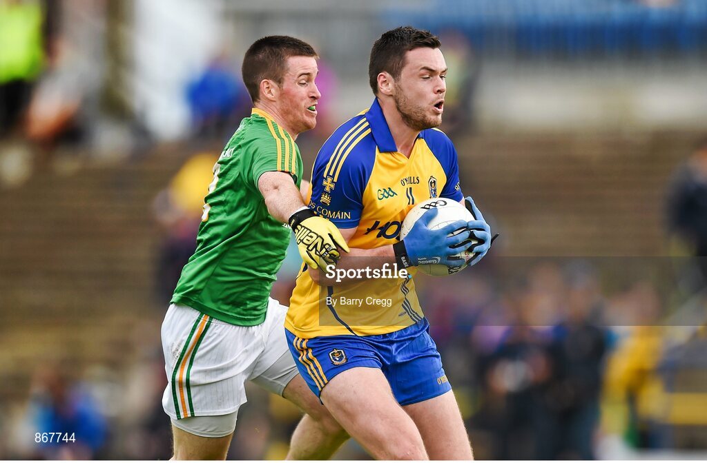 18 May 2014; Donie Shine, Roscommon, in action against Barry Prior, Leitrim. Connacht GAA Football Senior Championship Quarter-Final, Roscommon v Leitrim, Dr. Hyde Park, Roscommon. Picture credit: Barry Cregg / SPORTSFILE