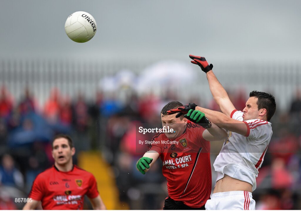 18 May 2014; Kyle Coney, Tyrone, in action against Danile McCartan, Down. Ulster GAA Football Senior Championship Preliminary Round, Tyrone v Down. Healy Park, Omagh, Co. Tyrone. Picture credit: Stephen McCarthy / SPORTSFILE