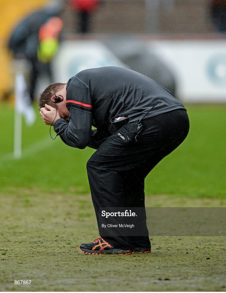18 May 2014; Down manager James McCartan reacts to a missed chance late in the game. Ulster GAA Football Senior Championship Preliminary Round, Tyrone v Down, Healy Park, Omagh, Co. Tyrone. Picture credit: Oliver McVeigh / SPORTSFILE