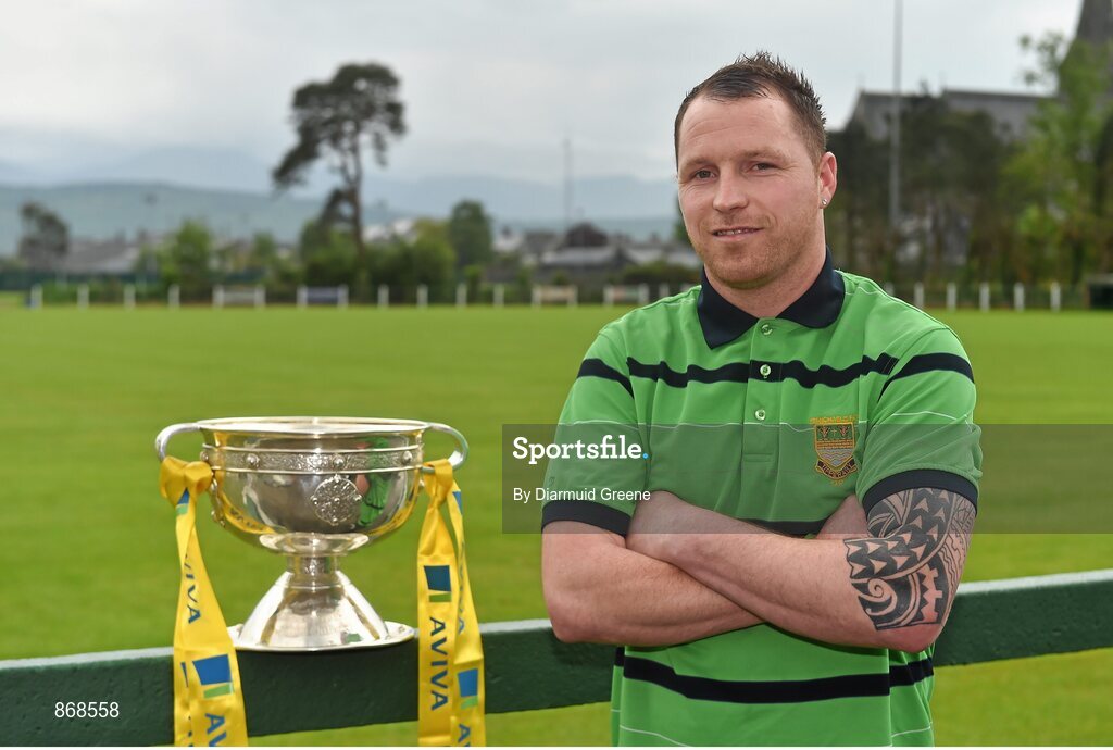 20 May 2014; St. Michael's AFC player Chris Higgins and the FAI Junior Cup during the FAI Junior Cup Aviva Communities Day ahead of Sunday's Final at the Aviva Stadium. St. Michael's AFC Clubhouse, Cooke Park, Tipperary Town. Picture credit: Diarmuid Greene / SPORTSFILE