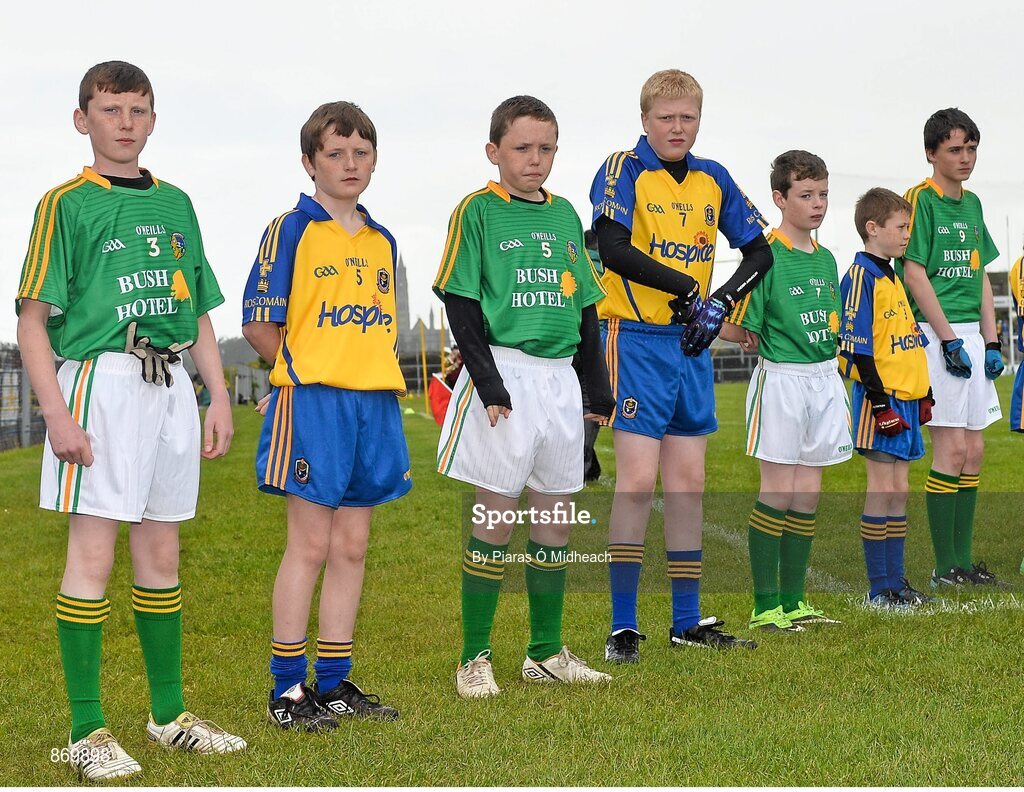18 May 2014; Children from the Cumann na mBunscoil exhibition games form a guard of honour for both teams before the game. Connacht GAA Football Senior Championship Quarter-Final, Roscommon v Leitrim, Dr. Hyde Park, Roscommon. Picture credit: Piaras Ó Mídheach / SPORTSFILE