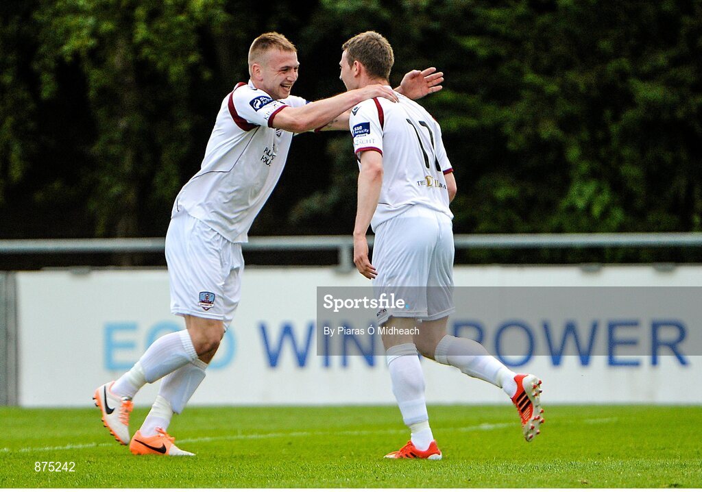 6 June 2014; Jason Molloy, right, Galway, celebrates his side's first goal with team-mate Stephen Walsh. FAI Ford Cup, 2nd Round, UCD v Galway, UCD Bowl, Belfield, Dublin. Picture credit: Piaras Ó Mídheach / SPORTSFILE