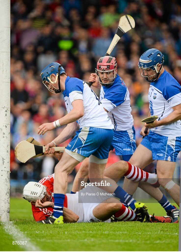 8 June 2014; Waterford players, from left, Austin Gleeson, Shane O'Sullivan and Liam Lawlor tussle with Cork's Patrick Cronin. Munster GAA Hurling Senior Championship, Quarter-Final Replay, Cork v Waterford, Semple Stadium, Thurles, Co. Tipperary. Picture credit: Piaras Ó Mídheach / SPORTSFILE