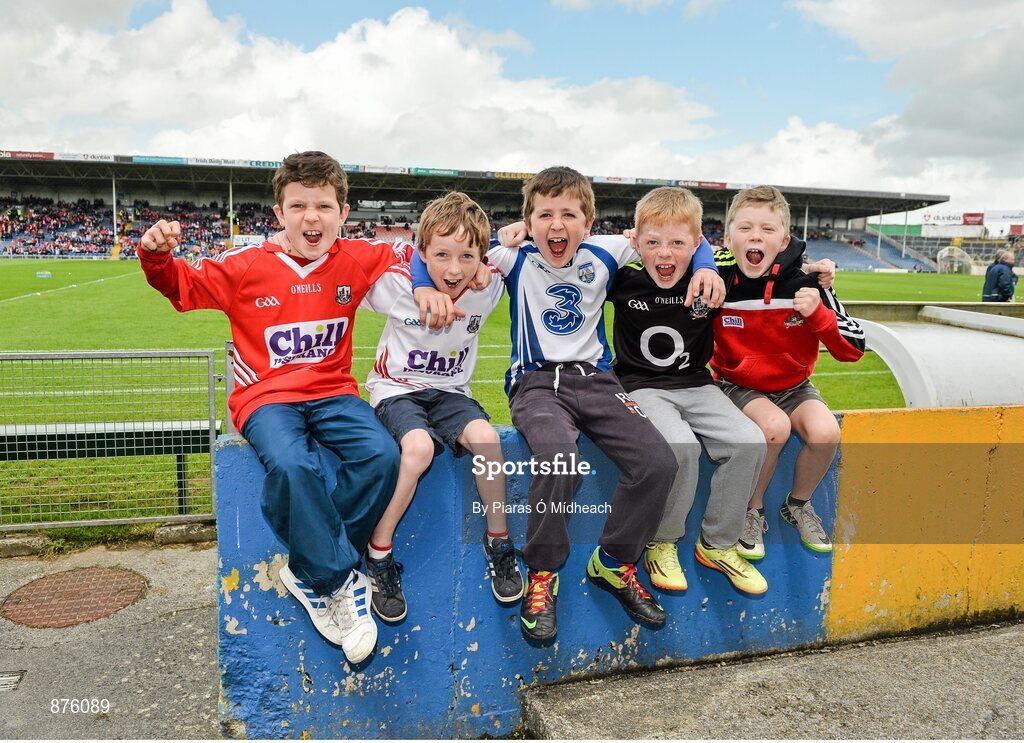 8 June 2014; Children from the Douglas GAA club in Cork, from left, Charlie Joesph Lucas, age 9, Alex Lynch, age 8, Cathal Hallahan, age 8, Billie O'Neill, age 9, and Mel Sheedy, age 9, before the game. Munster GAA Hurling Senior Championship, Quarter-Final Replay, Cork v Waterford, Semple Stadium, Thurles, Co. Tipperary. Picture credit: Piaras Ó Mídheach / SPORTSFILE