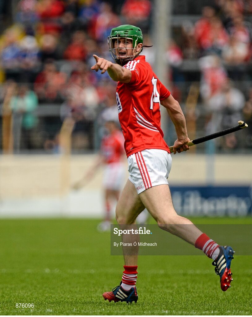 8 June 2014; Seamus Harnedy, Cork, celebrates scoring a point. Munster GAA Hurling Senior Championship, Quarter-Final Replay, Cork v Waterford, Semple Stadium, Thurles, Co. Tipperary. Picture credit: Piaras Ó Mídheach / SPORTSFILE