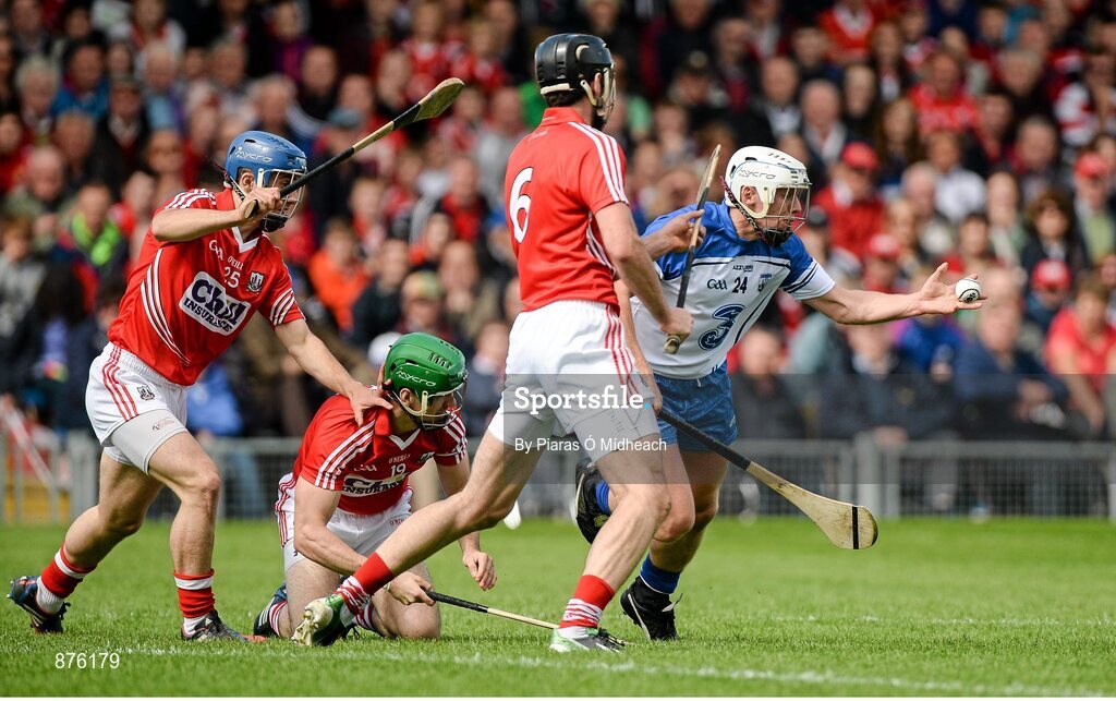 8 June 2014; Stephen Molumphy, Waterford, in action against Cork players, from left, Rob O'Shea, William Egan and Mark Ellis. Munster GAA Hurling Senior Championship, Quarter-Final Replay, Cork v Waterford, Semple Stadium, Thurles, Co. Tipperary. Picture credit: Piaras Ó Mídheach / SPORTSFILE