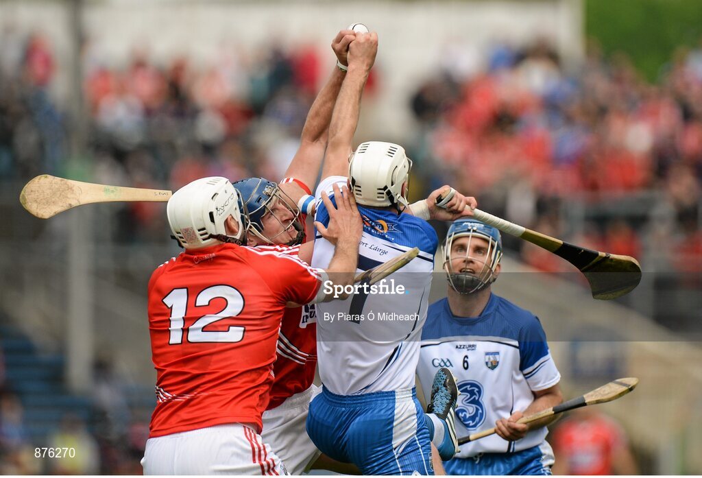 8 June 2014; Patrick Horgan, Cork, supported by Patrick Cronin, left, in action against Shane Fives, centre, and Michael Walsh, Waterford. Munster GAA Hurling Senior Championship, Quarter-Final Replay, Cork v Waterford, Semple Stadium, Thurles, Co. Tipperary. Picture credit: Piaras Ó Mídheach / SPORTSFILE