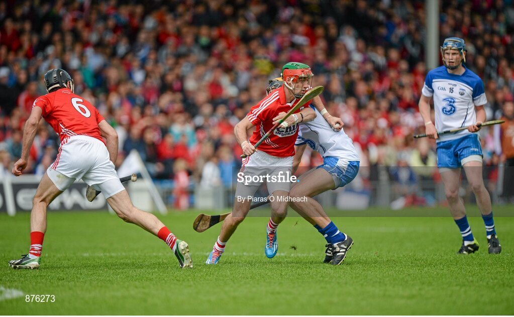 8 June 2014; Stephen McDonnell, Cork, supported by team-mate Mark Ellis, left, in action against Maurice Shanahan, and Austin Gleeson, right, Waterford. Munster GAA Hurling Senior Championship, Quarter-Final Replay, Cork v Waterford, Semple Stadium, Thurles, Co. Tipperary. Picture credit: Piaras Ó Mídheach / SPORTSFILE