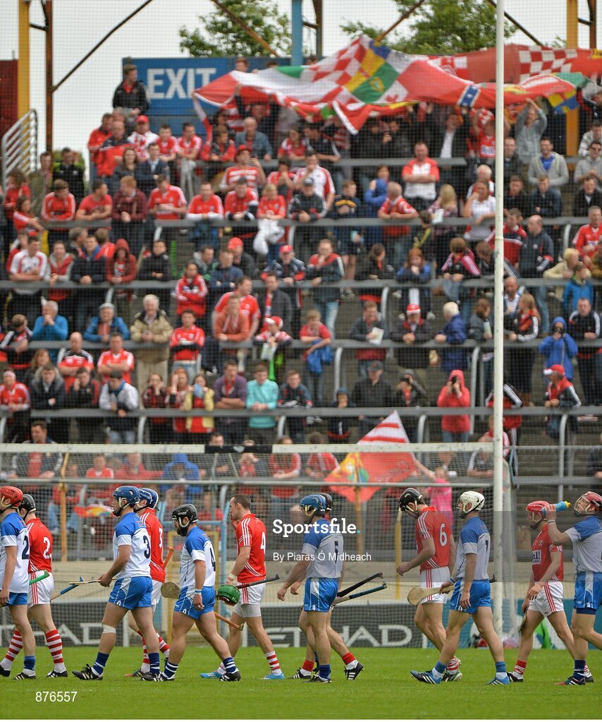 8 June 2014; Cork and Waterford players march in the pre-match parade. Munster GAA Hurling Senior Championship, Quarter-Final Replay, Cork v Waterford, Semple Stadium, Thurles, Co. Tipperary. Picture credit: Piaras Ó Mídheach / SPORTSFILE