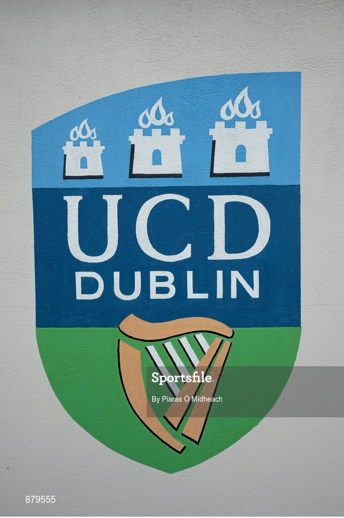 6 June 2014; A UCD crest on the wall of the UCD Bowl. FAI Ford Cup, 2nd Round, UCD v Galway, UCD Bowl, Belfield, Dublin. Picture credit: Piaras Ó Mídheach / SPORTSFILE