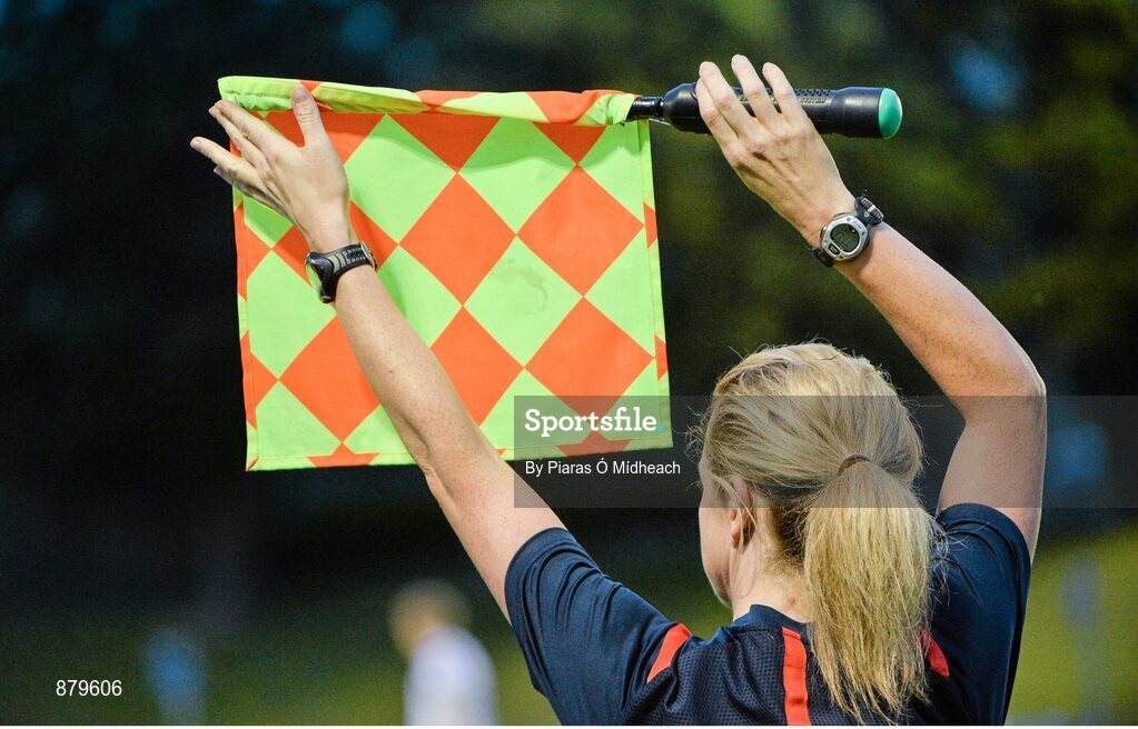 6 June 2014; Assistant referee Paula Brady signals for a substitution. FAI Ford Cup, 2nd Round, UCD v Galway, UCD Bowl, Belfield, Dublin. Picture credit: Piaras Ó Mídheach / SPORTSFILE