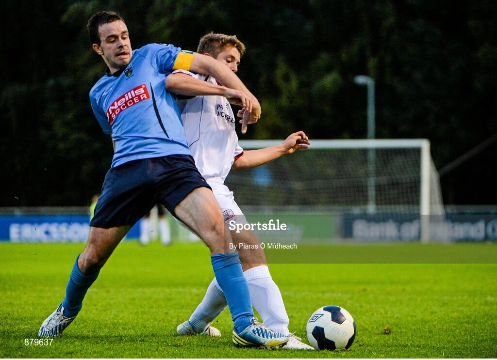6 June 2014; Robbie Benson, UCD, in action against Alex Byrne, Galway. FAI Ford Cup, 2nd Round, UCD v Galway, UCD Bowl, Belfield, Dublin. Picture credit: Piaras Ó Mídheach / SPORTSFILE