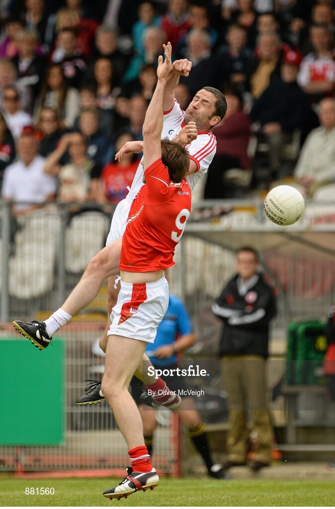 28 June 2014; Stephen O'Neill, Tyrone, in action against Mick Fanning, Louth. GAA Football All Ireland Senior Championship, Round 1B, Tyrone v Louth, Healy Park, Omagh, Co. Tyrone. Picture credit: Oliver McVeigh / SPORTSFILE