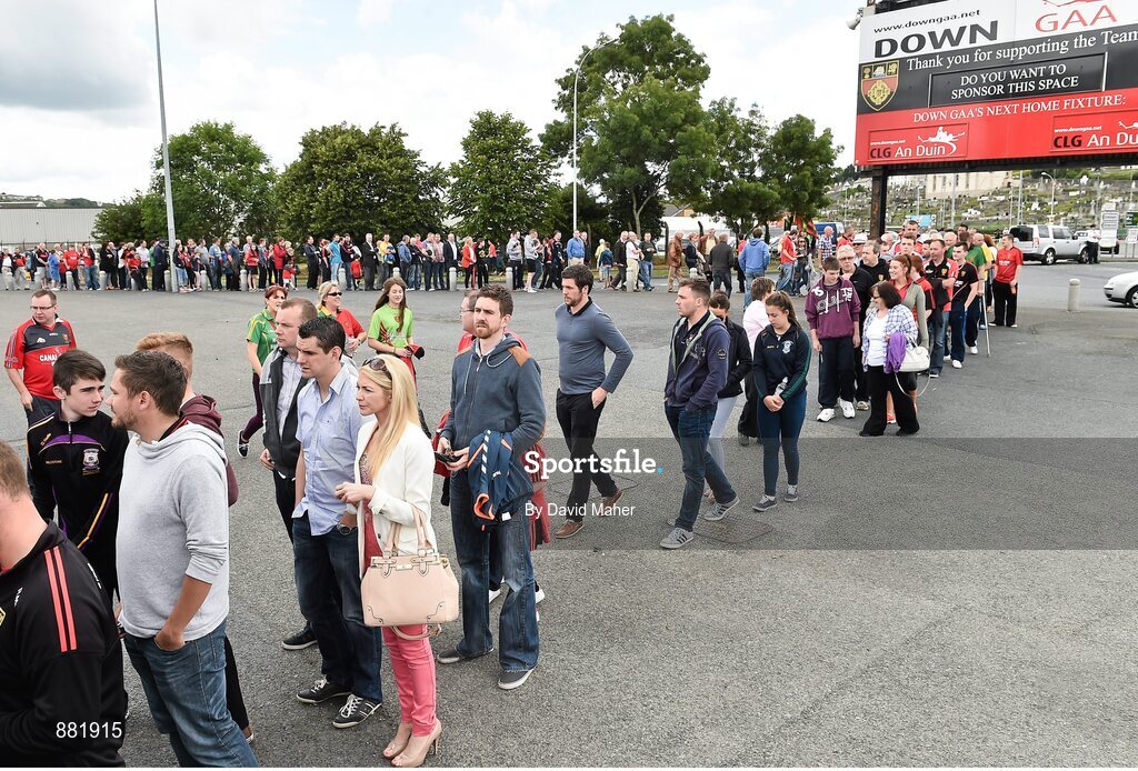 29 June 2014: Spectators queuing for tickets outside the ground which resulted in the game between Down and Leitrim being delayed by 15 minutes. GAA Football All Ireland Senior Championship, Round 1B, Down v Leitrim, Páirc Esler, Newry, Co. Down. Picture credit: David Maher / SPORTSFILE