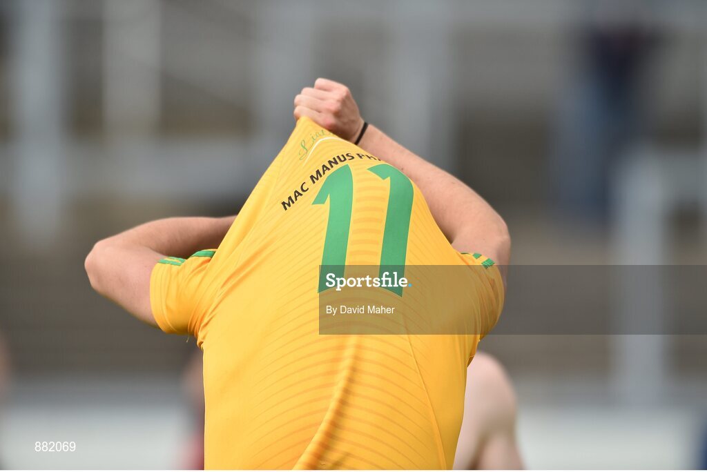 29 June 2014: Leitrim captain Emlyn Mulligan, takes his jersey off at the end of the game. GAA Football All Ireland Senior Championship, Round 1B, Down v Leitrim, Páirc Esler, Newry, Co. Down. Picture credit: David Maher / SPORTSFILE