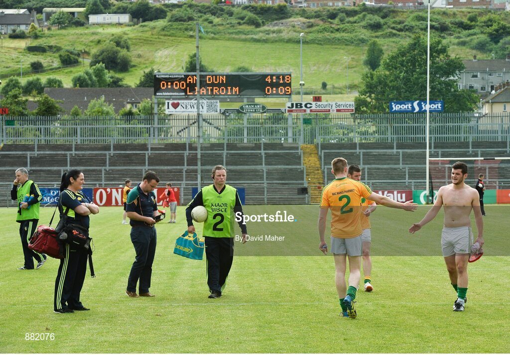 29 June 2014: A general view of the scoreboard as Leitrim players and officials walk off the pitch. GAA Football All Ireland Senior Championship, Round 1B, Down v Leitrim, Páirc Esler, Newry, Co. Down. Picture credit: David Maher / SPORTSFILE