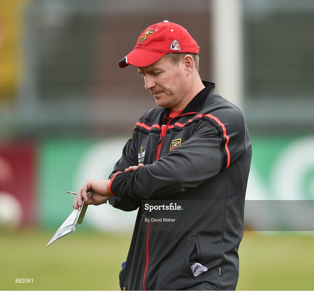 29 June 2014: Down manager James McCartan checks his watch before the start of the game. GAA Football All Ireland Senior Championship, Round 1B, Down v Leitrim, Páirc Esler, Newry, Co. Down. Picture credit: David Maher / SPORTSFILE