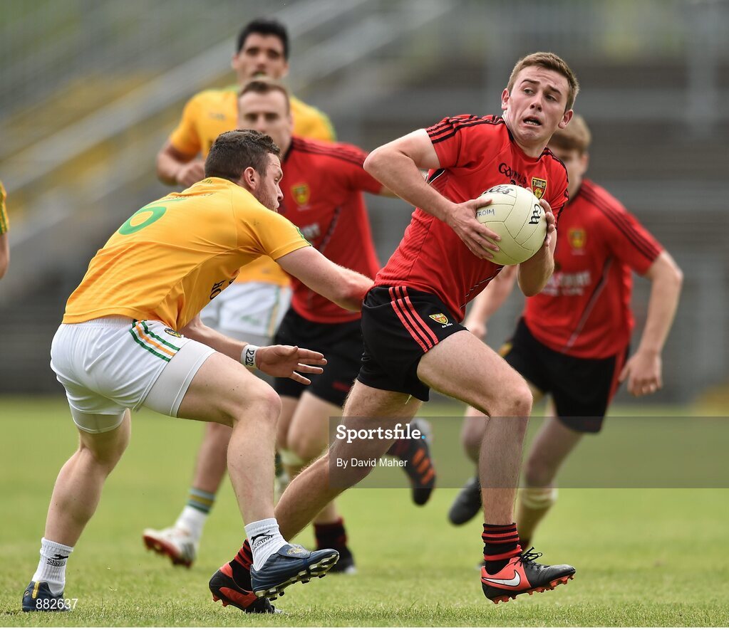 29 June 2014: Ciaran McCartan, Down, in action against Gary Reynolds, Leitrim. GAA Football All Ireland Senior Championship, Round 1B, Down v Leitrim, Páirc Esler, Newry, Co. Down. Picture credit: David Maher / SPORTSFILE