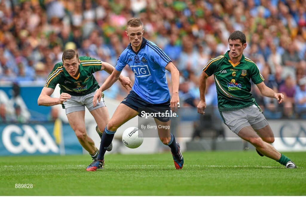 20 July 2014; Paul Mannion, Dublin, in action against Kevin Reilly, left, and Donal Keogan, right, Meath. Leinster GAA Football Senior Championship Final, Dublin v Meath, Croke Park, Dublin. Picture credit: Barry Cregg / SPORTSFILE