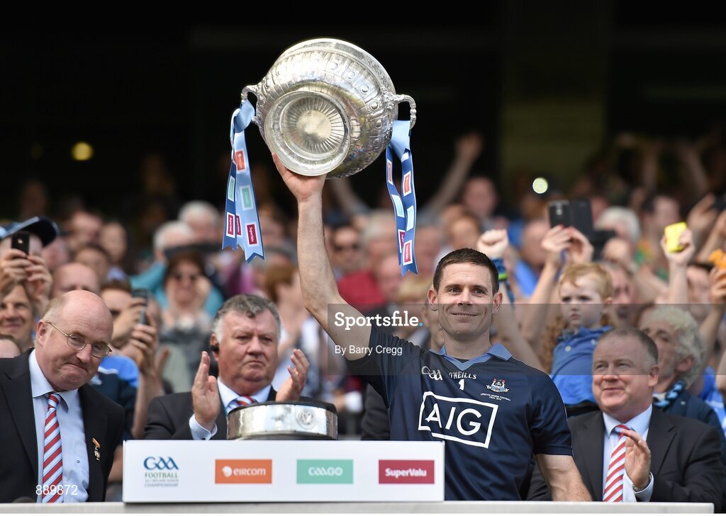 20 July 2014; Dublin captain Stephen Cluxton lifts the Delaney Cup. Leinster GAA Football Senior Championship Final, Dublin v Meath, Croke Park, Dublin. Picture credit: Barry Cregg / SPORTSFILE