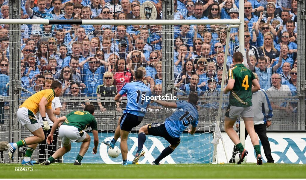 20 July 2014; Bernard Brogan, 15, Dublin, scores his side's first goal. Leinster GAA Football Senior Championship Final, Dublin v Meath, Croke Park, Dublin. Picture credit: Piaras Ó Mídheach / SPORTSFILE