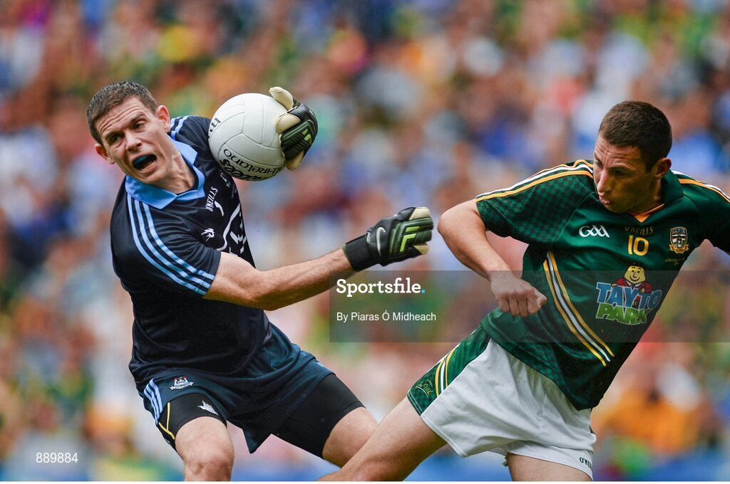 20 July 2014; Dublin goalkeeper Stephen Cluxton in action against Damien Carroll, Meath. Leinster GAA Football Senior Championship Final, Dublin v Meath, Croke Park, Dublin. Picture credit: Piaras Ó Mídheach / SPORTSFILE