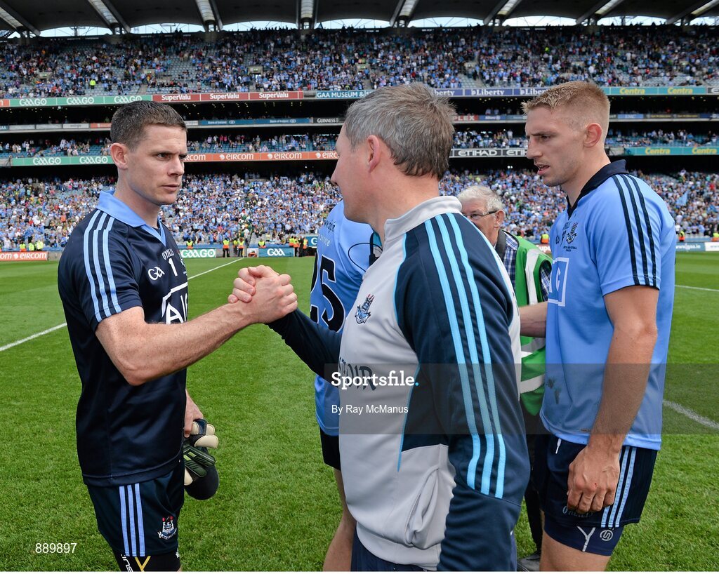 20 July 2014; The Dublin captain Stephen Cluxton and manager Jim Gavin after the game. Leinster GAA Football Senior Championship Final, Dublin v Meath, Croke Park, Dublin. Picture credit: Ray McManus / SPORTSFILE
