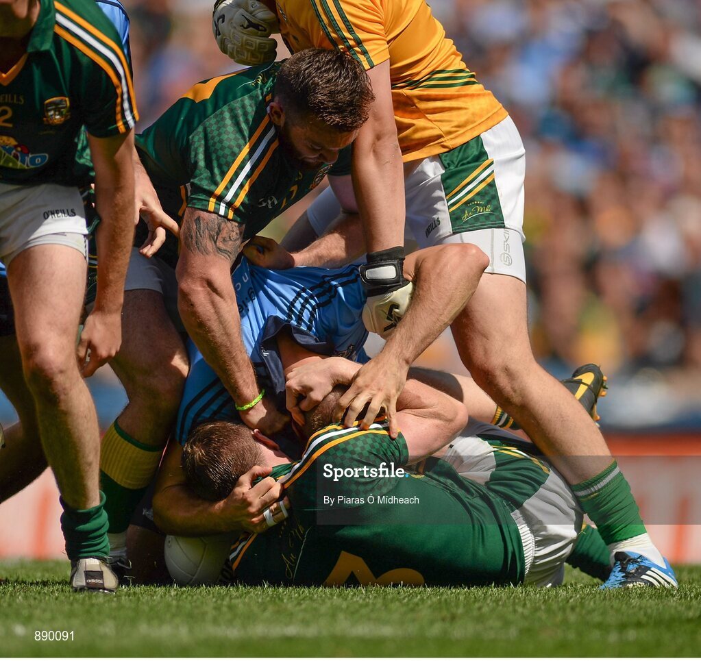 20 July 2014; Meath and Dublin players including Meath's Michael Burke, top, and Kevin Reilly, tussle with Eoghan O'Gara, Dublin, centre, during the second half. Leinster GAA Football Senior Championship Final, Dublin v Meath, Croke Park, Dublin. Picture credit: Piaras Ó Mídheach / SPORTSFILE