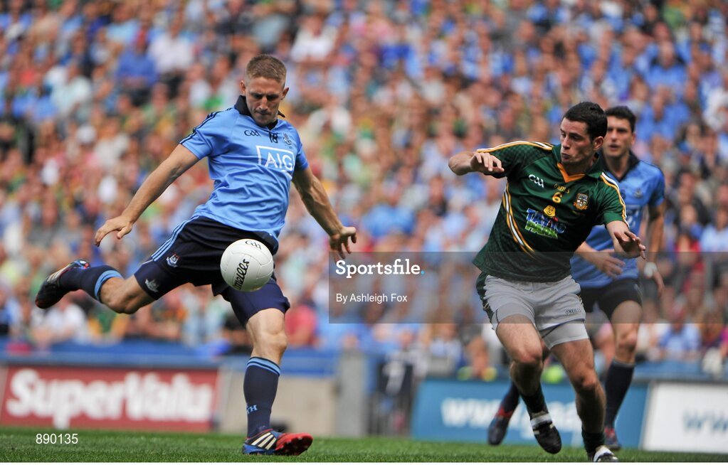 20 July 2014; Eoghan O'Gara, Dublin, in action against Donal Keogan, Meath. Leinster GAA Football Senior Championship Final, Dublin v Meath, Croke Park, Dublin. Picture credit: Ashleigh Fox / SPORTSFILE