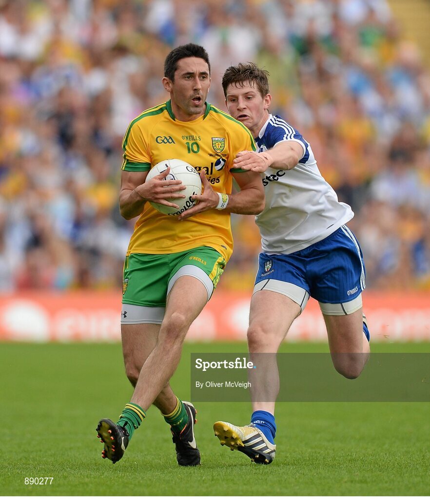 20 July 2014; Rory Kavanagh, Donegal, in action against Darren Hughes, Monaghan. Ulster GAA Football Senior Championship Final, Donegal v Monaghan, St Tiernach's Park, Clones, Co. Monaghan. Picture credit: Oliver McVeigh / SPORTSFILE