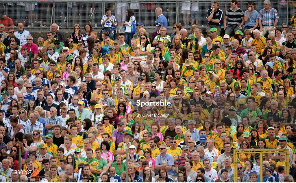 20 July 2014; Donegal and Monaghan fans at the game. Ulster GAA Football Senior Championship Final, Donegal v Monaghan, St Tiernach's Park, Clones, Co. Monaghan. Picture credit: Oliver McVeigh / SPORTSFILE