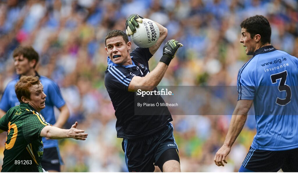 20 July 2014; Stephen Cluxton, Dublin, supported by team-mate Rory O'Carroll, right, in action against Dalton McDonagh, Meath. Leinster GAA Football Senior Championship Final, Dublin v Meath, Croke Park, Dublin. Picture credit: Piaras Ó Mídheach / SPORTSFILE