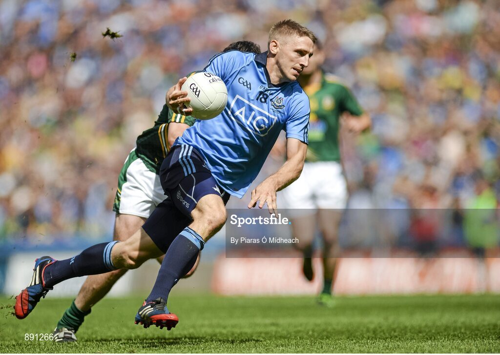 20 July 2014; Eoghan O'Gara, Dublin, in action against Eoin Harrington, Meath. Leinster GAA Football Senior Championship Final, Dublin v Meath, Croke Park, Dublin. Picture credit: Piaras Ó Mídheach / SPORTSFILE
