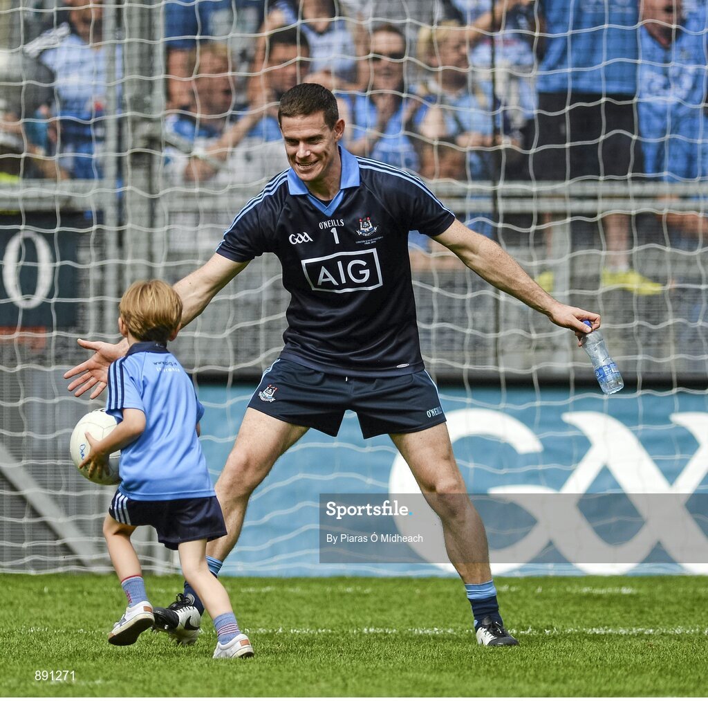 20 July 2014; Jamie Brogan, age 5, and son of Dublin footballer Alan Brogan, plays on the pitch after the game with Dublin captain Stephen Cluxton. Leinster GAA Football Senior Championship Final, Dublin v Meath, Croke Park, Dublin. Picture credit: Piaras Ó Mídheach / SPORTSFILE