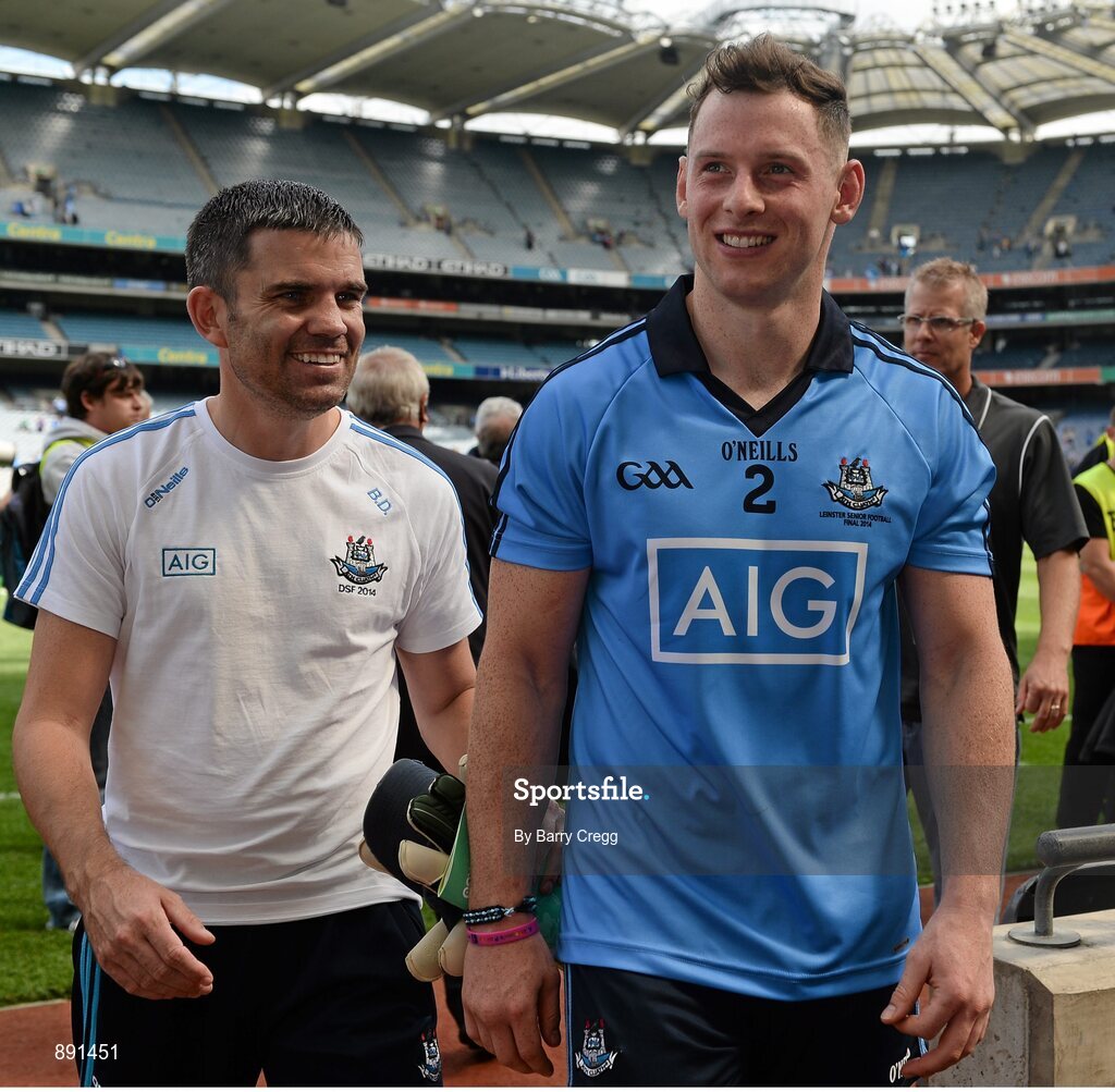 20 July 2014; Philip McMahon, Dublin, and Bernard Dunne, a member of the Dublin backroom staff and former WBA Super Bantamweight World Champion. Leinster GAA Football Senior Championship Final, Dublin v Meath, Croke Park, Dublin. Picture credit: Barry Cregg / SPORTSFILE