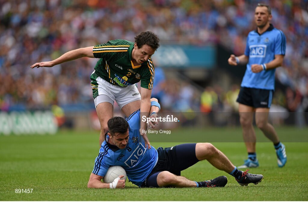 20 July 2014; Michael Darragh McCauley, Dublin, in action against Eoghan Harrington, Meath. Leinster GAA Football Senior Championship Final, Dublin v Meath, Croke Park, Dublin. Picture credit: Barry Cregg / SPORTSFILE