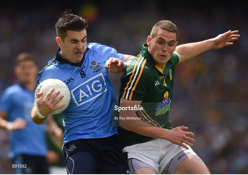 20 July 2014; Michael Darragh MacAuley, Dublin, in action against Bryan Menton, Meath. Leinster GAA Football Senior Championship Final, Dublin v Meath, Croke Park, Dublin. Picture credit: Ray McManus / SPORTSFILE