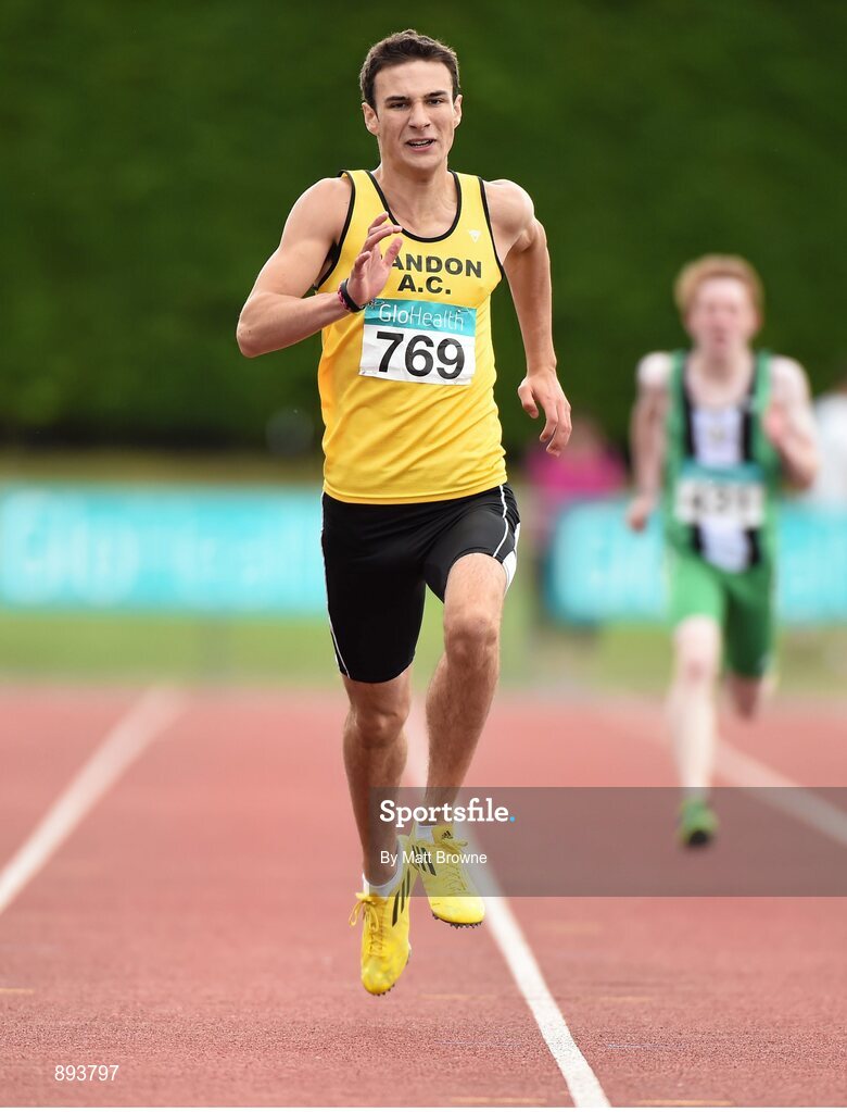 26 July 2014; Scott Gibson, from Bandon AC, Co. Cork, on his way to winning the boys under-18 400m. GloHealth Juvenile Track and Field Championships, Tullamore Harriers AC, Tullamore, Co. Offaly. Picture credit: Matt Browne / SPORTSFILE