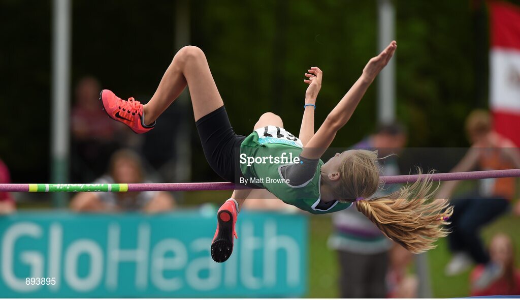 26 July 2014; Kylie Heinen, from Ferrybanks AC, Co. Waterford who came second in the girls under-13 high jump. GloHealth Juvenile Track and Field Championships, Tullamore Harriers AC, Tullamore, Co. Offaly. Picture credit: Matt Browne / SPORTSFILE