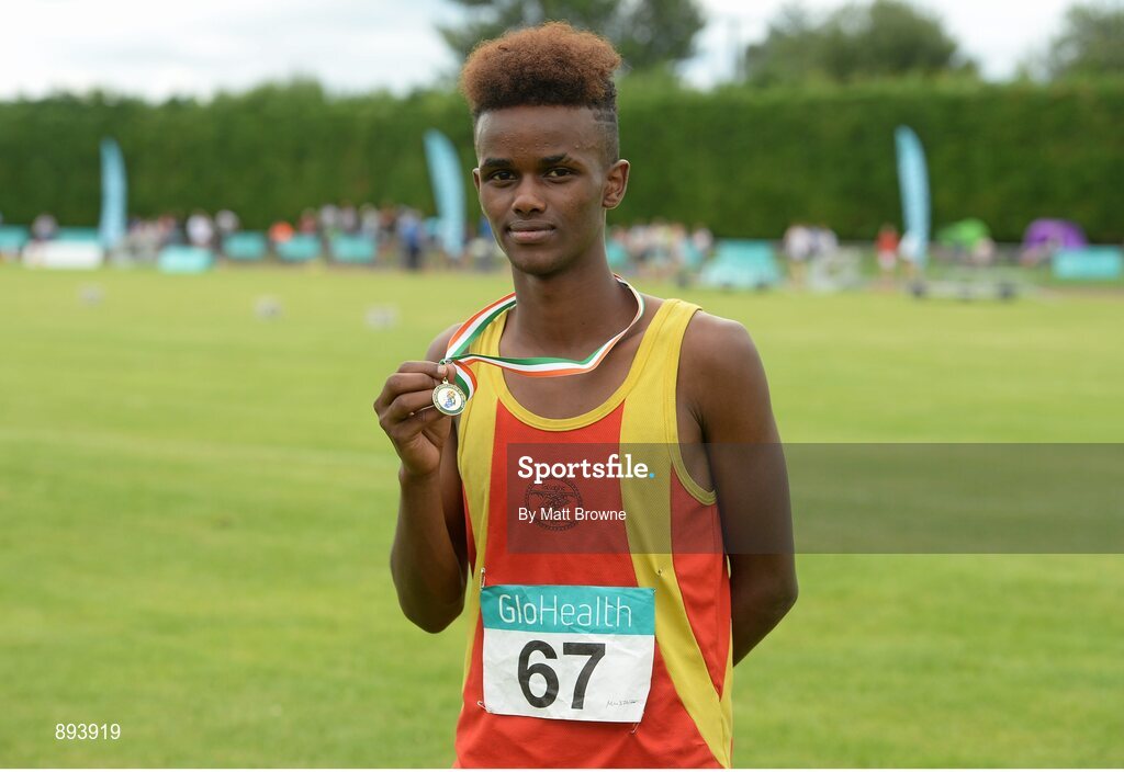 26 July 2014; Mustafe Nasir, from Tallaght AC, Dublin, who won the boys U17 800m. GloHealth Juvenile Track and Field Championships, Tullamore Harriers AC, Tullamore, Co. Offaly. Picture credit: Matt Browne / SPORTSFILE