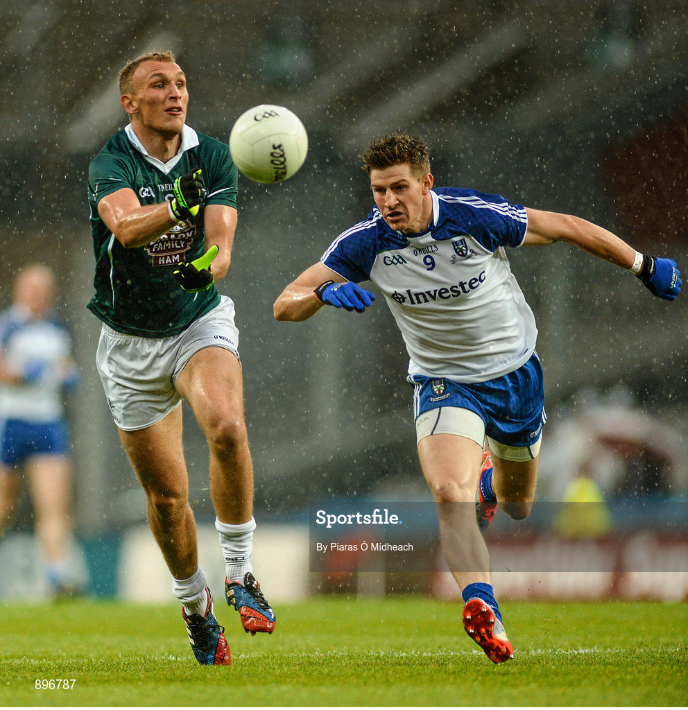 2 August 2014; Tommy Moolick, Kildare, in action against Darren Hughes, Monaghan. GAA Football All-Ireland Senior Championship, Round 4B, Kildare v Monaghan, Croke Park, Dublin. Picture credit: Piaras Ó Mídheach / SPORTSFILE