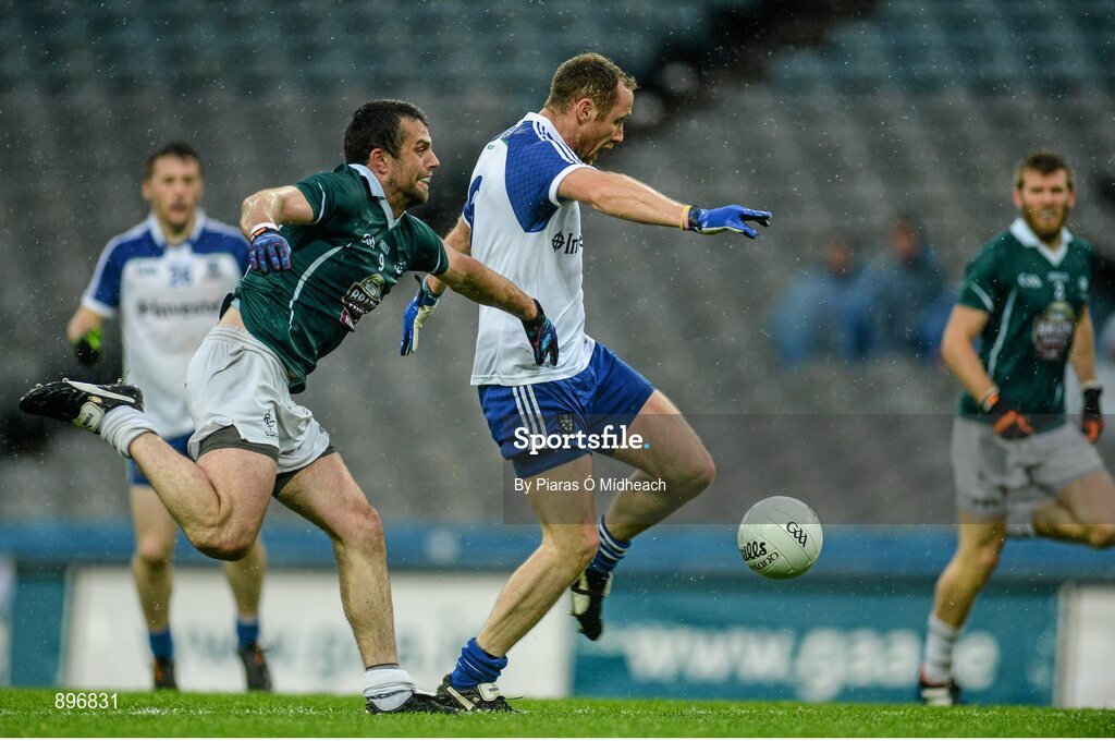 2 August 2014; Vinny Corey, Monaghan, scores his side's first goal, despite the efforts of Padraig O'Neill, Kildare. GAA Football All-Ireland Senior Championship, Round 4B, Kildare v Monaghan, Croke Park, Dublin. Picture credit: Piaras Ó Mídheach / SPORTSFILE