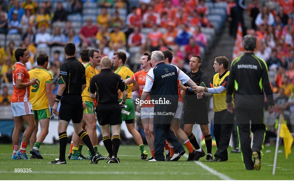 9 August 2014; Players and management during an altercation in the first half. GAA Football All-Ireland Senior Championship, Quarter-Final, Donegal v Armagh, Croke Park, Dublin. Picture credit: Stephen McCarthy / SPORTSFILE