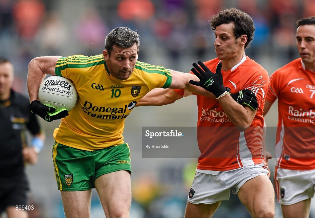9 August 2014; Christy Toye, Donegal, in action against Jamie Clarke, Armagh. GAA Football All-Ireland Senior Championship, Quarter-Final, Donegal v Armagh, Croke Park, Dublin. Photo by Sportsfile