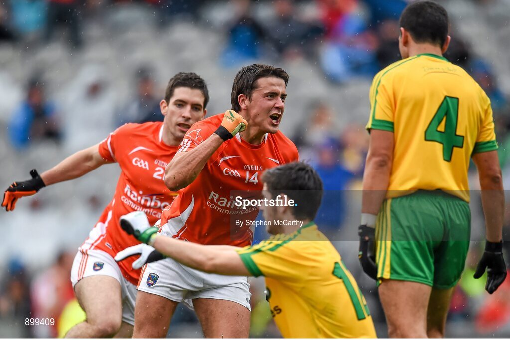 9 August 2014; Stefan Campbell, Armagh, celebrates after scoring his side's first goal. GAA Football All-Ireland Senior Championship, Quarter-Final, Donegal v Armagh, Croke Park, Dublin. Picture credit: Stephen McCarthy / SPORTSFILE