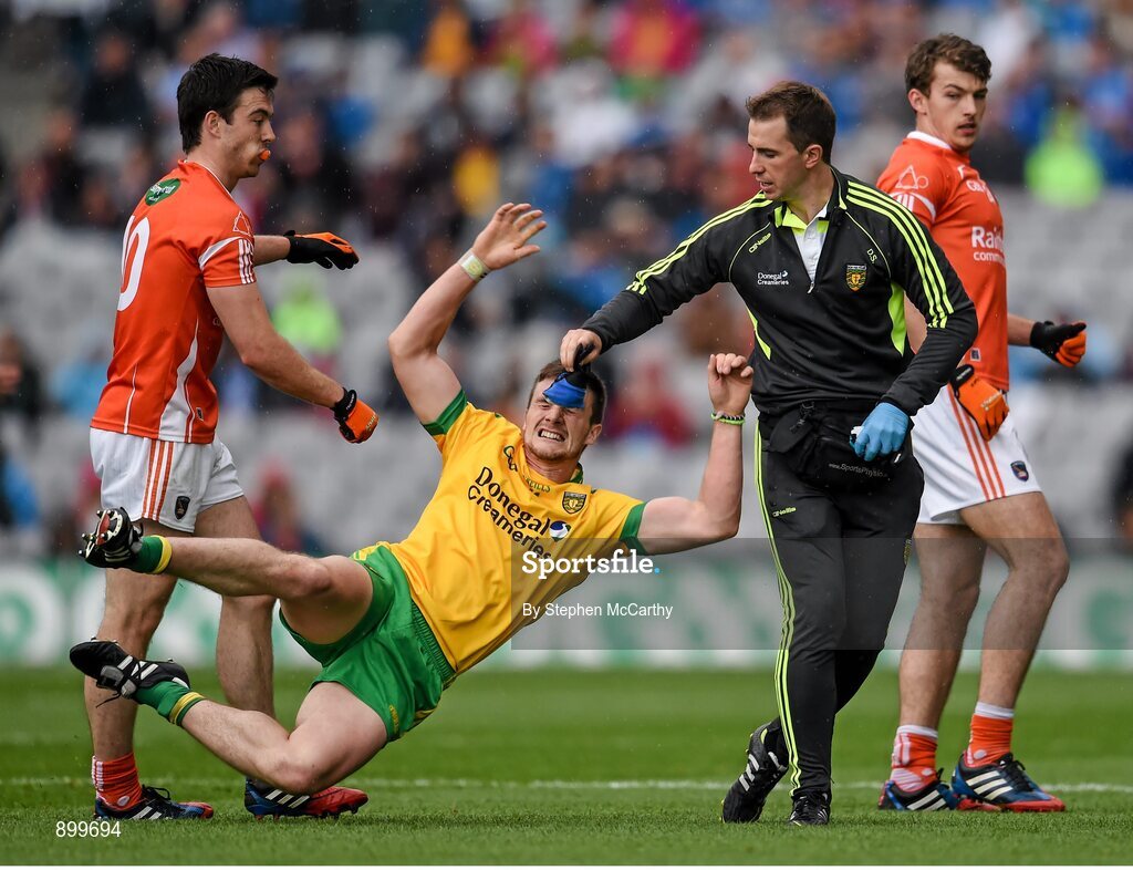 9 August 2014; Leo McLoone, Donegal, and Aidan Forker, Armagh, during a second half altercation. GAA Football All-Ireland Senior Championship, Quarter-Final, Donegal v Armagh, Croke Park, Dublin. Picture credit: Stephen McCarthy / SPORTSFILE