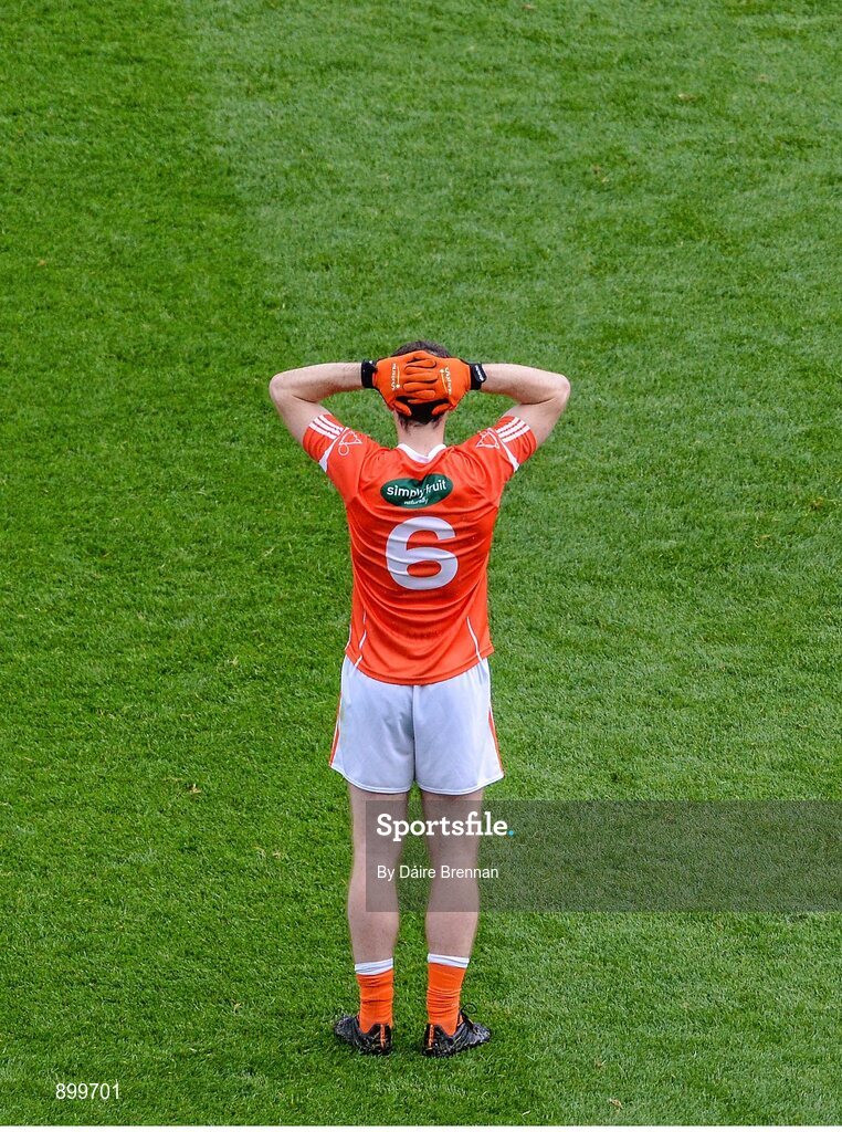9 August 2014; A dejected Brendan Donaghy, Armagh, after the game. GAA Football All-Ireland Senior Championship, Quarter-Final, Donegal v Armagh, Croke Park, Dublin. Picture credit: Dáire Brennan / SPORTSFILE