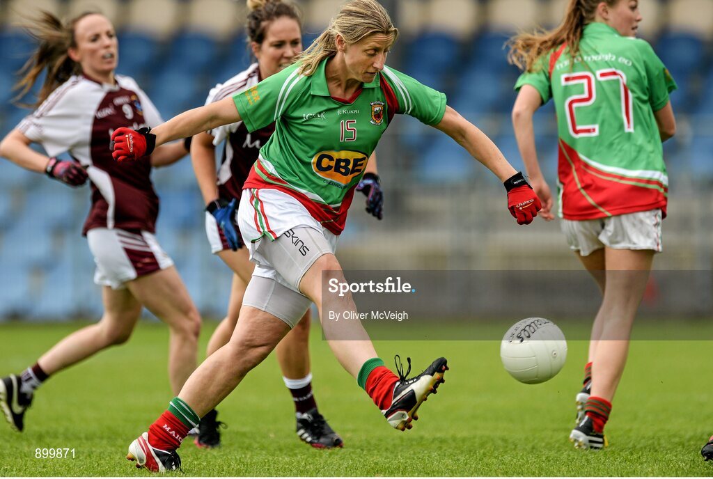 9 August 2014; Cora Staunton, Mayo, scoring he sides first goal. TG4 All-Ireland Ladies Football Senior Championship, Round 2 Qualifier, Mayo v Westmeath, Pearse Park, Longford. Picture credit: Oliver McVeigh / SPORTSFILE
